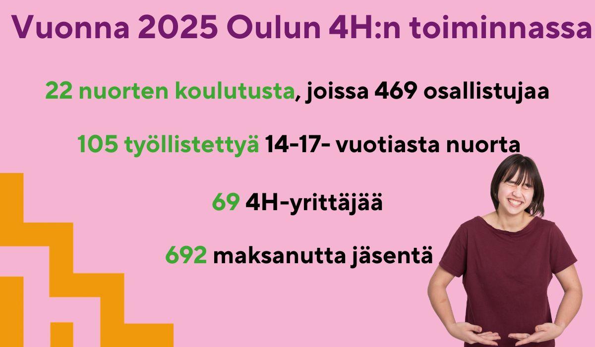 4H‑jäsenenä pääset osallistumaan Oulun 4H-yhdistyksen monipuoliseen toimintaan edullisesti. Toiminnassa pääsee oppimaan uutta, kehittymään ja mahdollisuuden löytää omat vahvuudet turvallisessa ympäristössä.